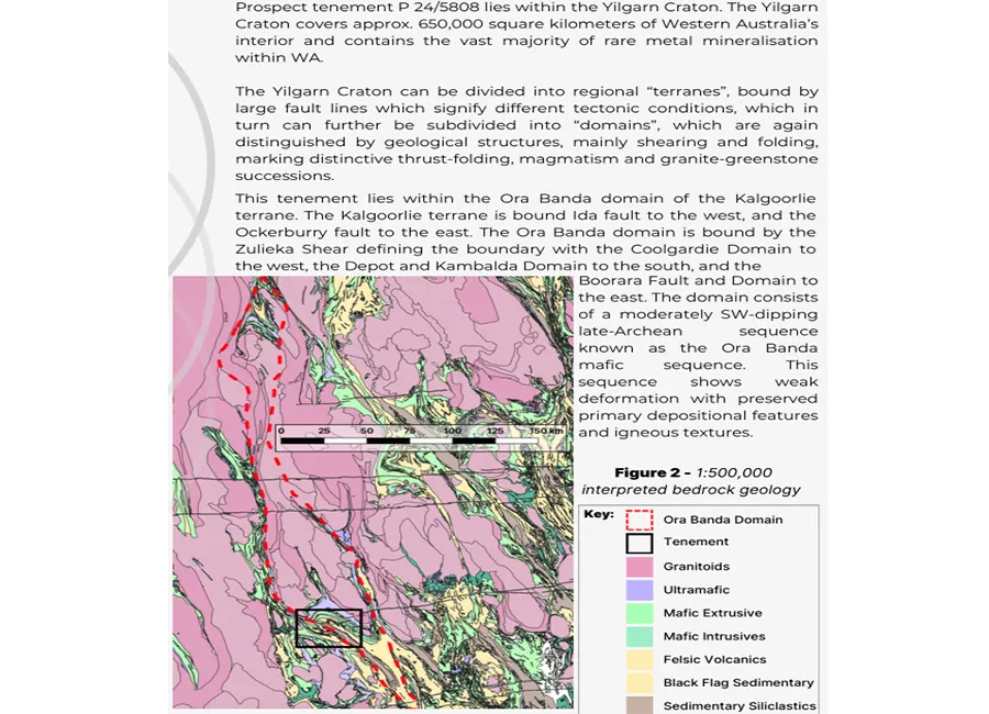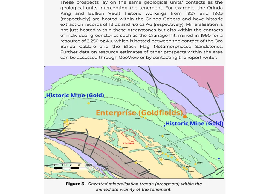 This lease covers 196 hectares of prime gold ground within the historic Ora Banda Goldfield, a proven gold-producing area with over 1 million ounces of historical output. The tenement lies in the fertile Ora Banda Domain greenstones, just 5km west of Ora Banda and 59km northwest of Kalgoorlie, making it easily accessible with only a short 1km 4WD track off the main road.